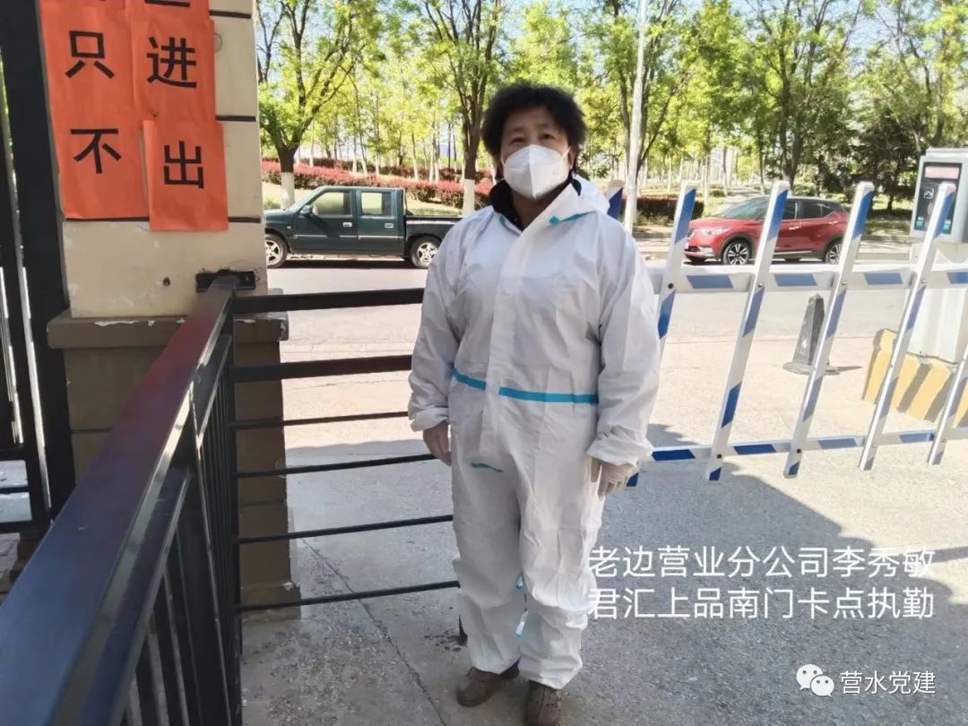 老邊營業(yè)分公司的李秀敏同志是一名有著20年黨齡的老黨員,本輪疫情開始,她克服腿傷尚未痊愈和丈夫已投身疫情防控一線家中無人照料等諸多困難,第一時間與智勝社區(qū)對接,主動擔(dān)負(fù)起濱水人家小區(qū)等卡點(diǎn)的執(zhí)勤任務(wù)。每天4個多小時的站崗執(zhí)勤,對常人來說尚不輕松,對于腿部有傷的她來說更是十分吃力。每天執(zhí)勤歸來,身心俱疲的她還要及時統(tǒng)計(jì)報(bào)送黨員參與志愿服務(wù)情況和居家隔離黨員實(shí)際情況,常常是一忙就忙到深夜。