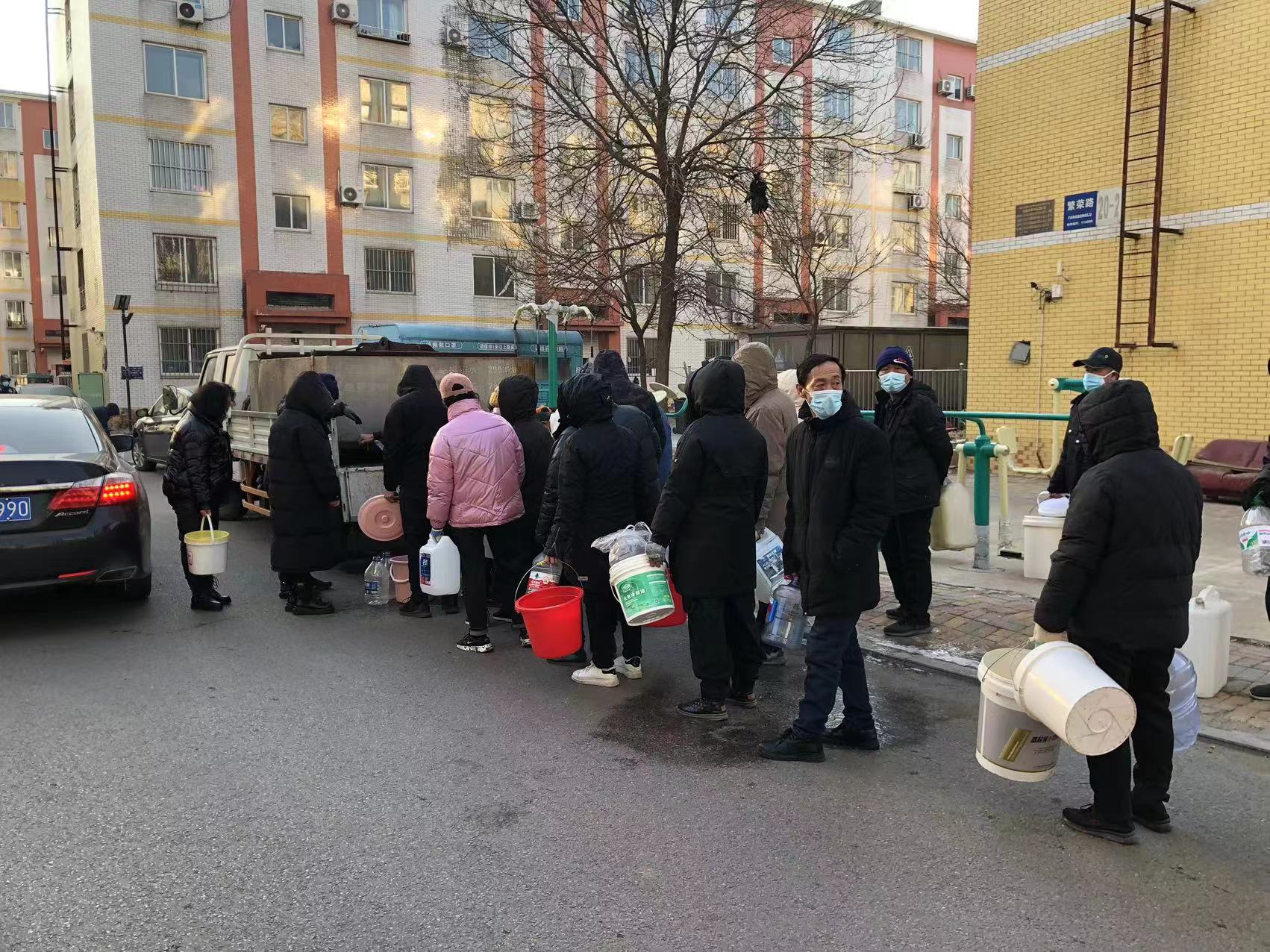 “水務(wù)集團(tuán)來送水了,這水送的太及時(shí)了,真是太感謝你們了!”幾位小區(qū)居民接過裝滿水的水桶感激地說到。