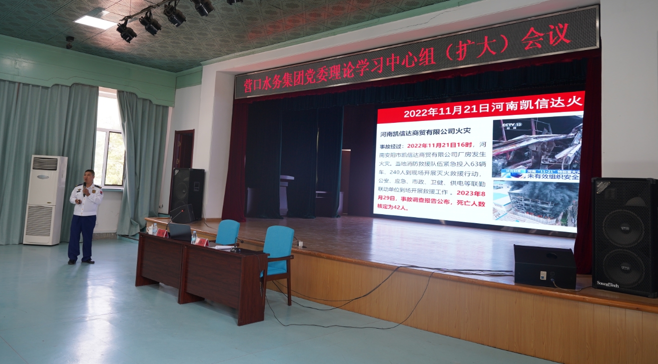 5月19日,營口水務(wù)集團(tuán)召開黨委理論學(xué)習(xí)中心組(擴大)會議暨消防安全集中整治動員部署會議。集團(tuán)領(lǐng)導(dǎo)班子成員、中層管理人員及各單位班組長、安全員160余人參加會議。
