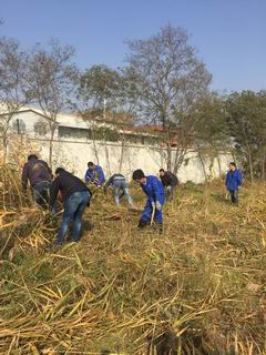 第五水廠是水務(wù)集團(tuán)較大的水廠之一,主要承擔(dān)西部工業(yè)水的運(yùn)行輸送工作。因地形特殊,清水池綠化帶、林木周邊、防護(hù)電網(wǎng)等許多位置不適合機(jī)械除草,約有4萬平方米的雜草需人工處理。10月14日下午13時(shí),水務(wù)集團(tuán)全體班子成員和來自機(jī)關(guān)部室、基層單位的240余名男職工戴著手套、拿著鐮刀,迅速地投入到事先分配好的20個(gè)勞動(dòng)區(qū)域中開展勞動(dòng)。水廠院內(nèi)地上的雜草以蘆葦和蒿草為主,足有一人多高,已被秋風(fēng)吹得干枯發(fā)黃,不易清除。領(lǐng)導(dǎo)班子成員身先士卒,帶頭示范,鼓舞了志愿者們的志氣,許多志愿者的手上都磨出了水泡或被雜草劃傷,但是大家毫無怨言,發(fā)揚(yáng)特別能吃苦、特別能戰(zhàn)斗的精神,忍痛堅(jiān)持到了最后。經(jīng)過全體志愿者的共同努力,經(jīng)過4小時(shí)連續(xù)奮戰(zhàn),4萬平方米的雜草全面清除干凈,同時(shí)對雜草中的白色垃圾進(jìn)行了集中清理,廠區(qū)環(huán)境衛(wèi)生得到了明顯改善??粗鍧嵭l(wèi)生的水廠,志愿者們的心里洋溢著自豪感和成就感,同時(shí)也享受到了勞動(dòng)的光榮與快樂。