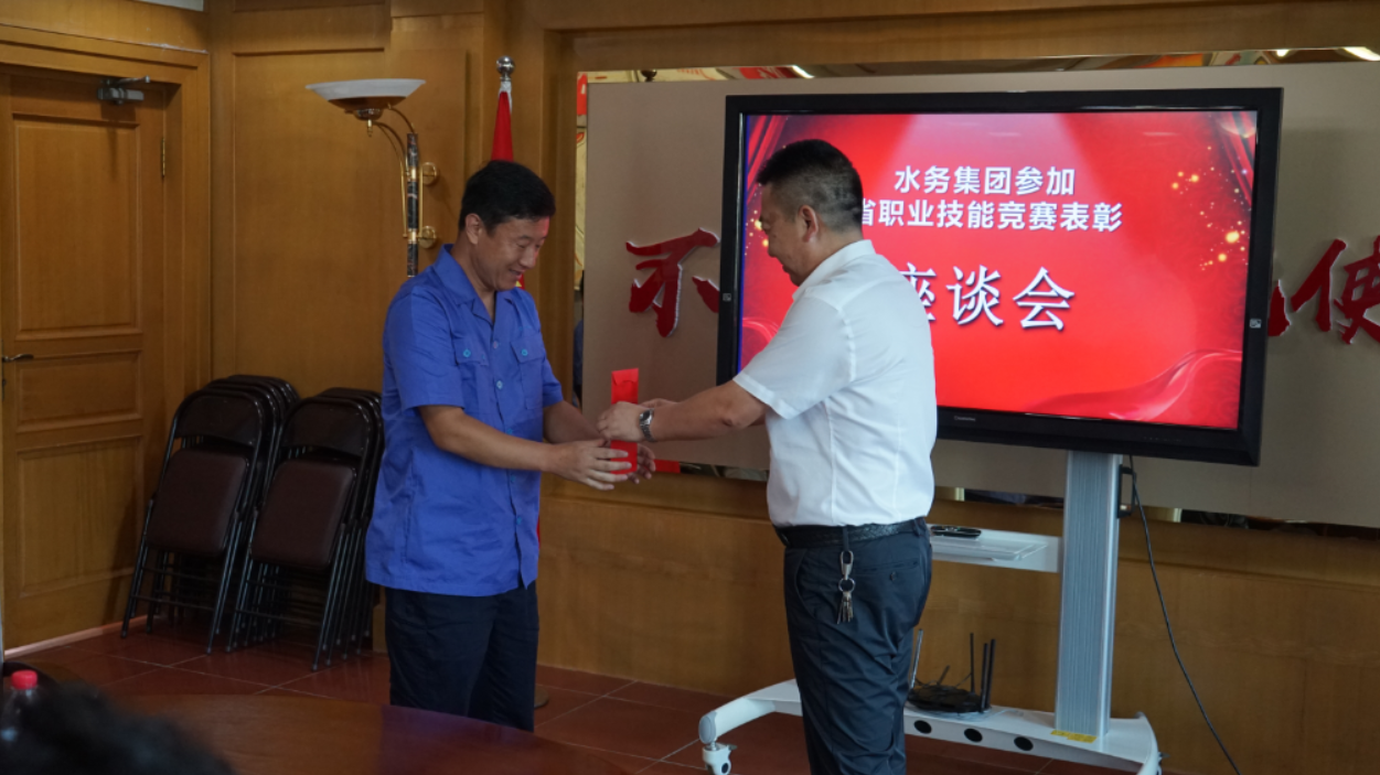 為了弘揚(yáng)工匠精神,激勵員工學(xué)技術(shù)、練本領(lǐng)、比貢獻(xiàn)、創(chuàng)一流的意識,9月1日下午,在集團(tuán)三樓會議室召開水務(wù)集團(tuán)參加省職業(yè)技能競賽表彰座談會,集團(tuán)黨委書記、董事長張業(yè)維,黨委副書記、總經(jīng)理李寶斌,工會主席于光立親臨會場,接見參賽選手并給獲獎選手頒獎。座談會上,選手們對集團(tuán)為他們提供的這次外出比賽、交流的機(jī)會表示感謝,通過此次競賽,他們發(fā)現(xiàn)了理論和實操中的不足和短板。選手們紛紛表示,在今后的工作中,他們會以此為起點,把成績化作動力,汲取先進(jìn)經(jīng)驗,為企業(yè)發(fā)展以及供水事業(yè)做出貢獻(xiàn)!
