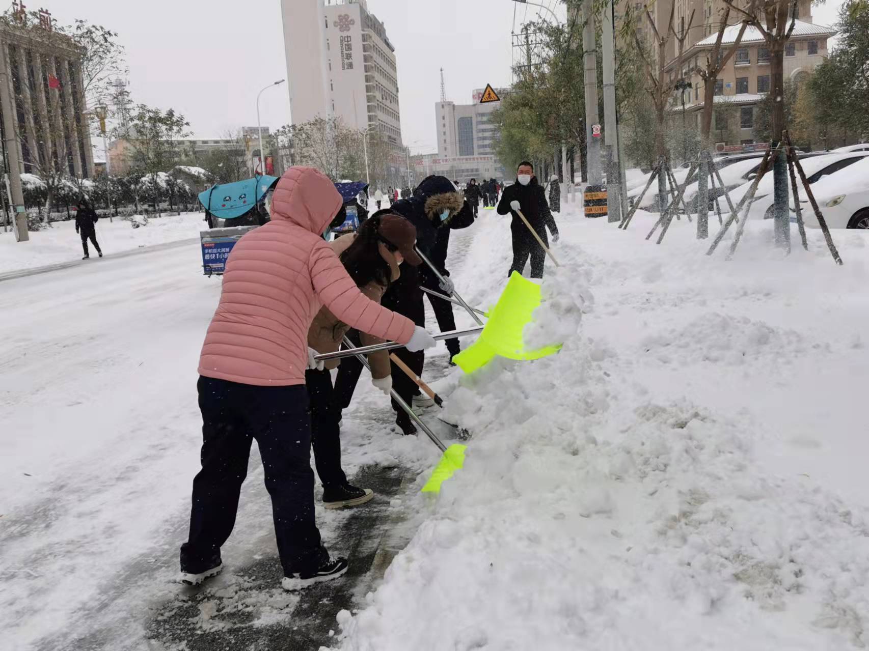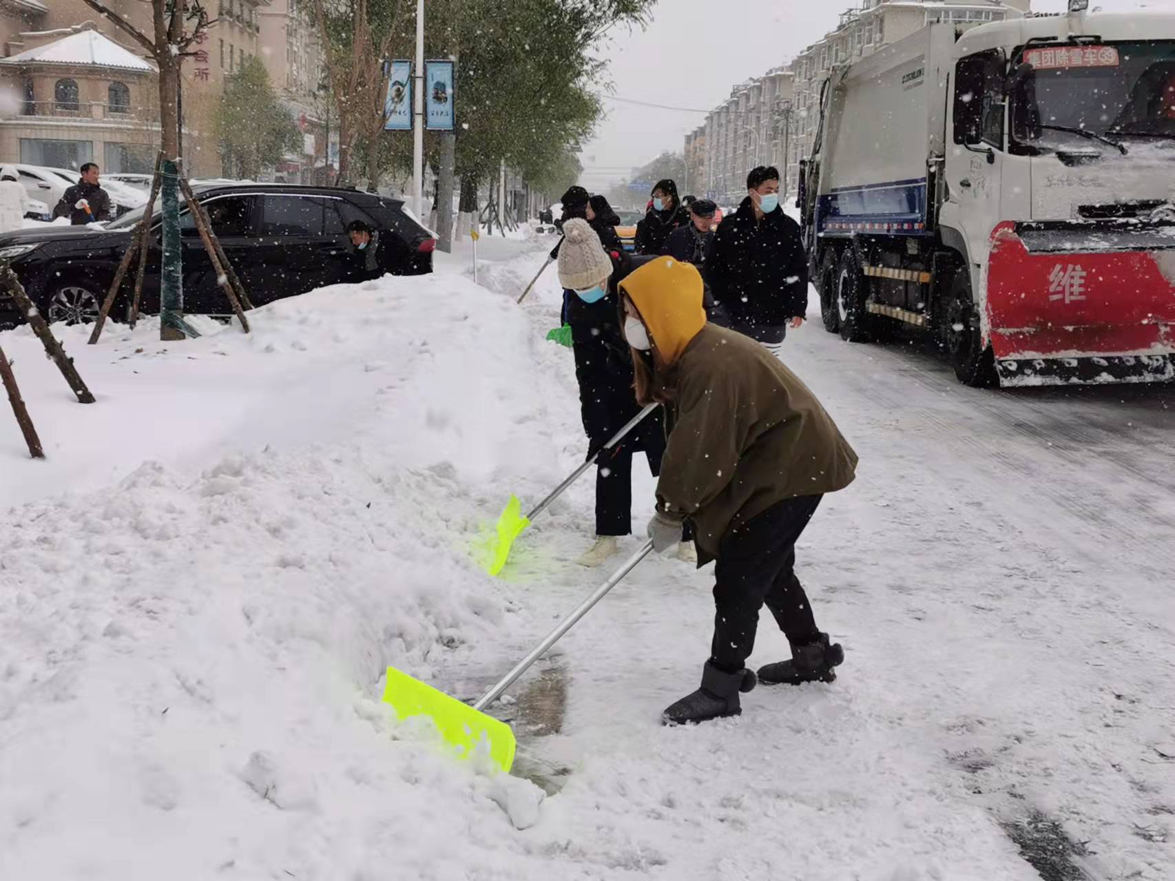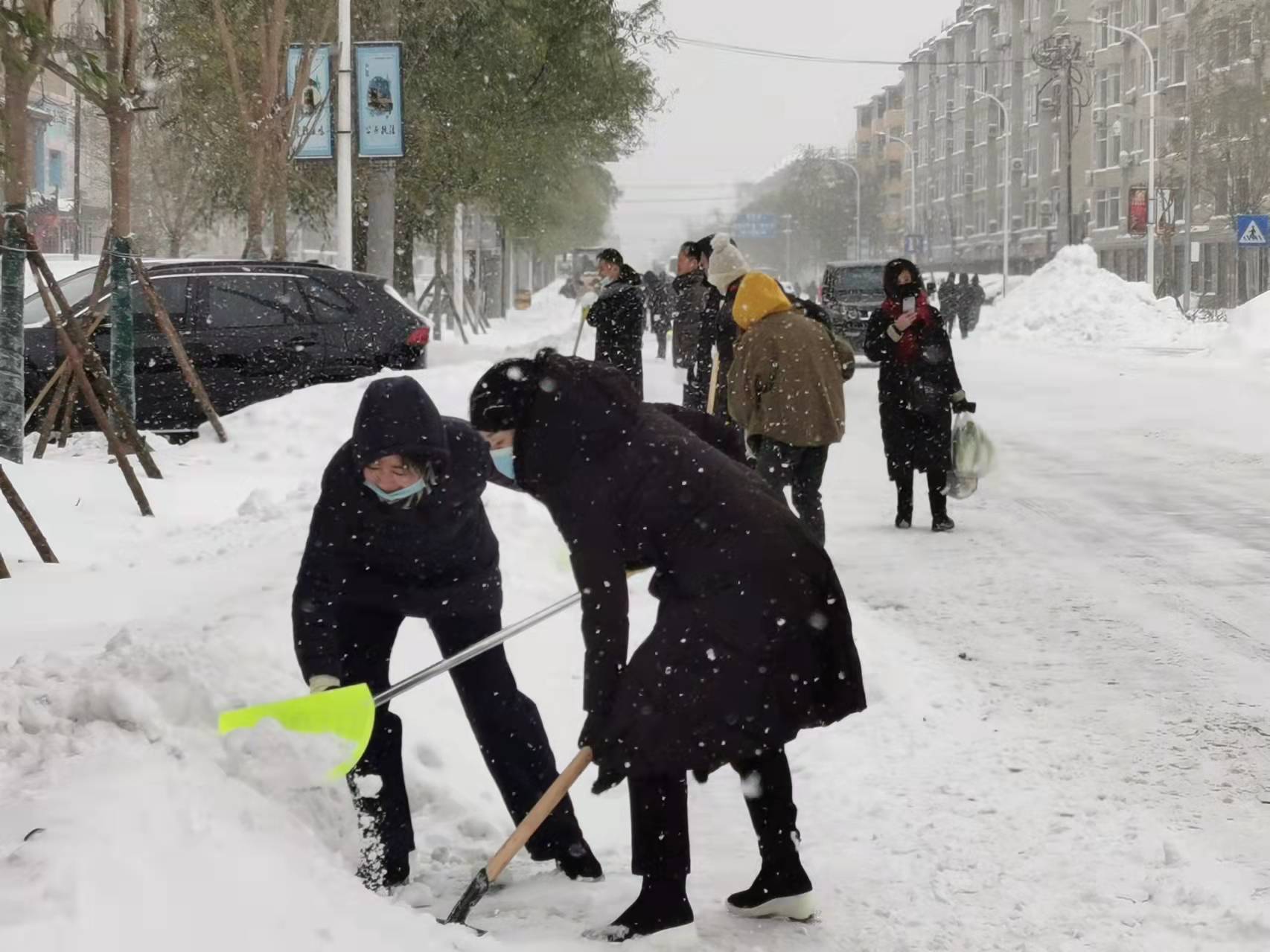 不懼嚴(yán)寒,頂雪前行。11月8日清晨,水務(wù)集團(tuán)黨委書記、董事長張業(yè)維親臨現(xiàn)場指揮除雪,集團(tuán)出動鏟車12臺,卡車24輛,挖掘機(jī)1臺,4支除雪突擊隊(duì)分成20多個(gè)除雪小組,從新興大街西環(huán)路口到東新路路口,每間隔30米都能看到水務(wù)職工忙碌的身影,大家不畏嚴(yán)寒,埋頭苦干,不停揮舞手中的除雪鍬,冒雪前進(jìn),做到邊下邊清不間斷除雪。